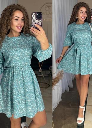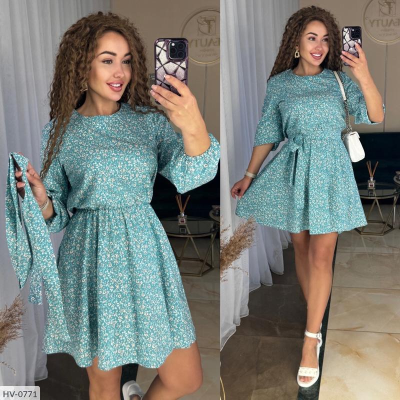 Сукня HV-0771 Модель 1057 Размеры: 42-44, 46-48 Тканина софт На поясі резинка Тканинний пояс в комплекті Кольори: бежевий, м'ятний, чорний з білими квітами, чорний з митними квітами