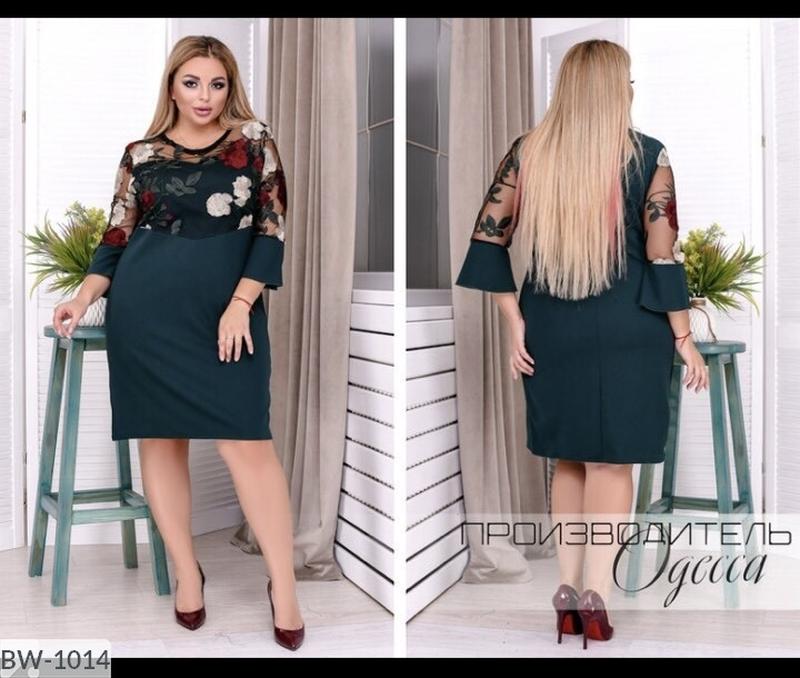 Сукня BW-1014 Мод787 Размеры: 54, 56, 58, 60 Тканина: креп-дайвінг + вишивка на сітці