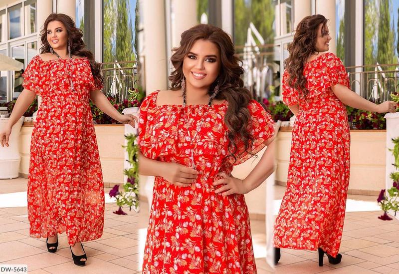 Сукня DW-5643 1215 Размеры: 50-52, 58-60 Колір: однотон : синій, бордо, тюльпани: Електрик, зелений, червоний, синій. Тканина шифон на трикотажному підкладі про-во Туреччини. Довга сукня максі створена для високих дівчат.