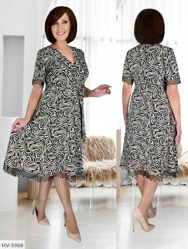 Сукня HV-5968 мод. 644 Размеры: 50, 52, 54, 56 Тканина: супер софт, рукав і низ вставки евросетка, декольте на запах Довжина: 115 Р. 50, О. грудей 100 О. Талії 88 О. Стегон 110 Р. 52, о. грудей 104 О. Талії 92 О. Стегон 114 Р. 54, о. грудей 108 О. Талії 96 О. Стегон 118 Р. 56, о. грудей 112 О. Талії 100 О. Стегон 122