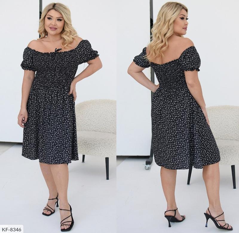 Сукня KF-8346 код: 216. Размеры: 48-50, 52-54, 56-58 Тканина: штапель. Колір: Білий, чорний. (48-50) ог = от резинка 80-110, Довжина 94, рукав 20. (52-54) ог = от резинка 90-120, Довжина 96, рукав 20. (56-58) ог = от резинка 100-130, Довжина 98, рукав 20. Верх-резинка, легко тягнеться.