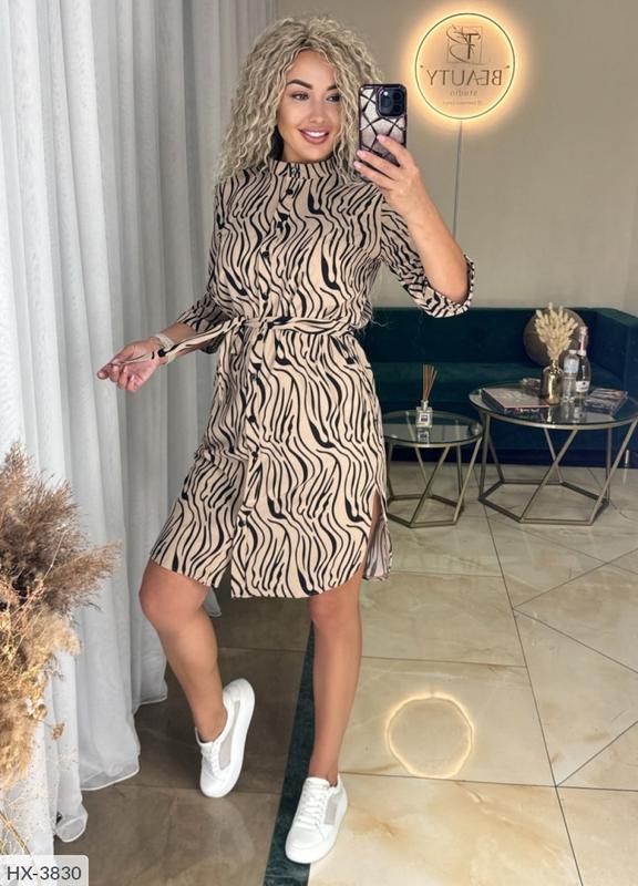 Сукня HX-3830 арт. sv 539 Размеры: XL, 2XL Тканина: Євро-софт Колір: мокко Опис: сукня-сорочка міді довжини з бічними розрізами. Модель з коміром стійкою і рукавами 3/4 застібається на гудзики, в бічних швах кишені.