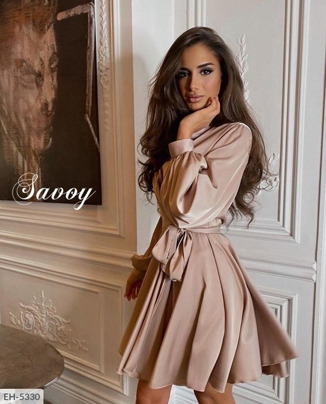 Сукня EH-5330 мод 299 Размеры: 42-46 Тканина шовк Спідниця у сукні йде сонцем Довжина 90 см Кольори: темна пудра, рожевий, червоний, чорний, електрик, хакі, беж, смарагд, шоколад