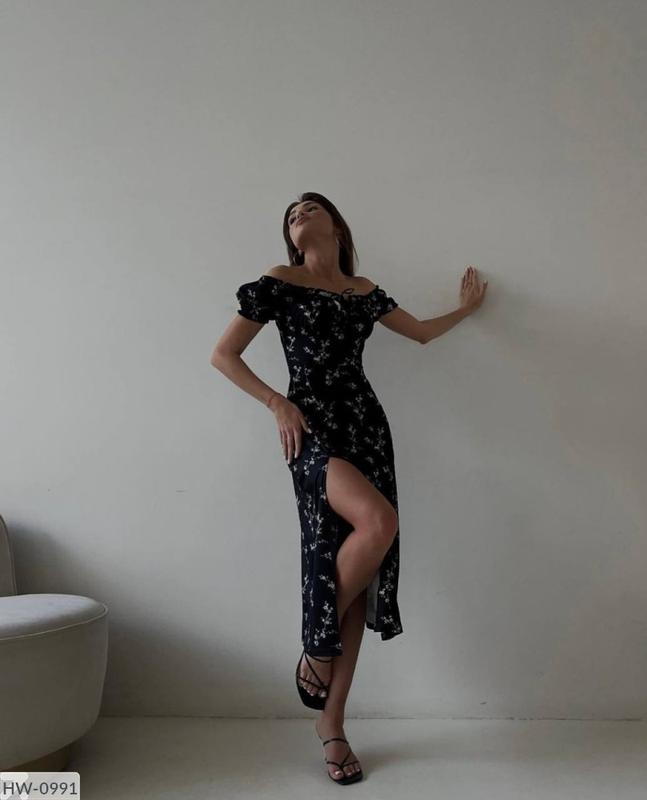 Сукня HW-0991 Мод: 173 Размеры: 42-44, 44-46 Отримали у великій кількості Колір: - блакитний - білий - бірюза - чорний Тканина: софт принт квіточки Довжина 100см Кращі ціни, новинки, наявність (АВ 4663)