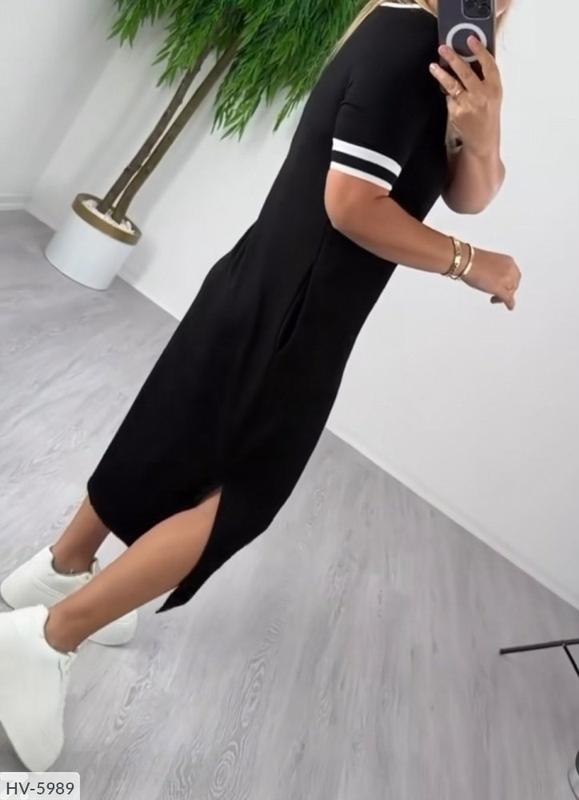 Сукня HV-5989 Мод 049 Размеры: 48-50, 52-54, 56-58 Тканина: двунитка відмінної якості (має хорошу розтяжність) Кольори: чорний Заміри ********** ********** Довжина 110 см
