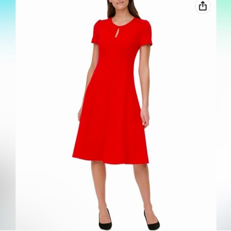 Платье красного цвета, чуточку темнее чем на фото.Сзади молния. Длина 96см ПОГ 47см ПОТ 42см, немного тянется Смотрите другие мои объявления э много интересного, делайте подписи.