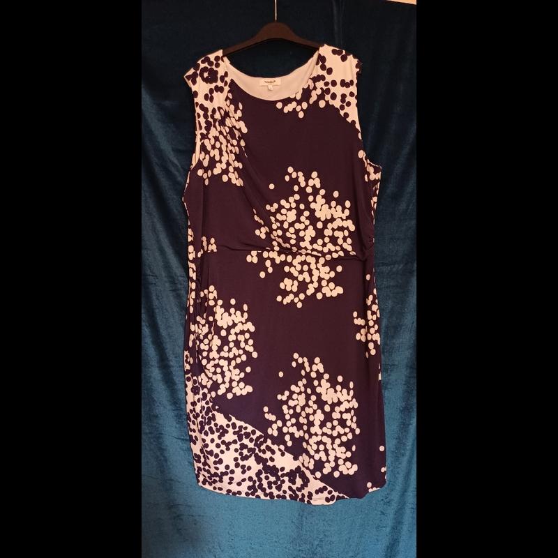 Платье летнее с подкладкой, тянется. На талии имеет сборку, сбоку Длина 115 см Ширина по талии 52 см Ширина под рукавами 65 см