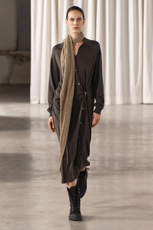 Платье средней длины с рубашечным воротником, длинными рукавами и пуговицами сбоку. S в наличии S: Длина 123 Плечи 49 Рукав 56 Пог 57 Пот 56 Пос 57 49% ПОЛІЕСТЕР 20% ПОЛИАМИД 19% АКРИЛ 12% ВОЛНА