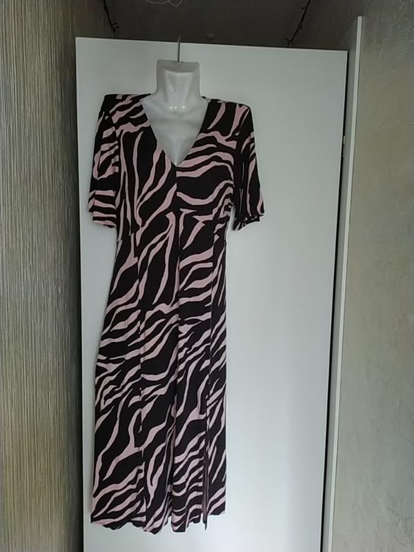 в идеальном состоянии. вискоза с эластаном, ткань тянется. длина 118 ширина под рукавами 52-65( тянется) по бедрам 56( и тянется).