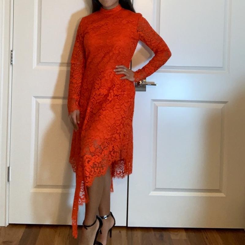 Шикарное вечернее кружевное платье миди h&m с асимметричным низом на запах.
