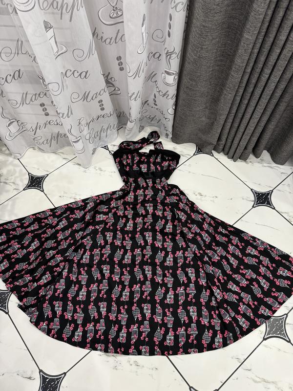 Черное миди платье, в необычное принт, размер 8/XS-S Очень пышное и стильное платье. Тканина стрейчева, трохи тягнеться. Замеры изделия: Полуобхва груди 37 см Полуобхват талии 33-34 см Длина 95 см