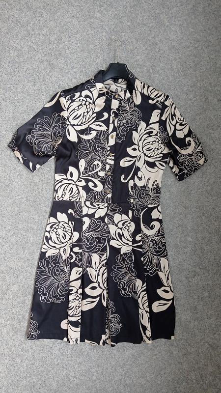 Смотрится очень красиво. Плечи - 42,5 см., ПОГ - 50 см. (ткань эластичная немного тянется где-то на +1 см.), ПОТ - 43 см. (тянется до 45,5 см., ПОБ замеряла на 15 см. ниже талии (на один см ниже начала складок) - 53 см. (тянется до 59 см.), длина рукава - 30 см., длина - 101 см. Фото недостатков - два последние, в носке незаметно.