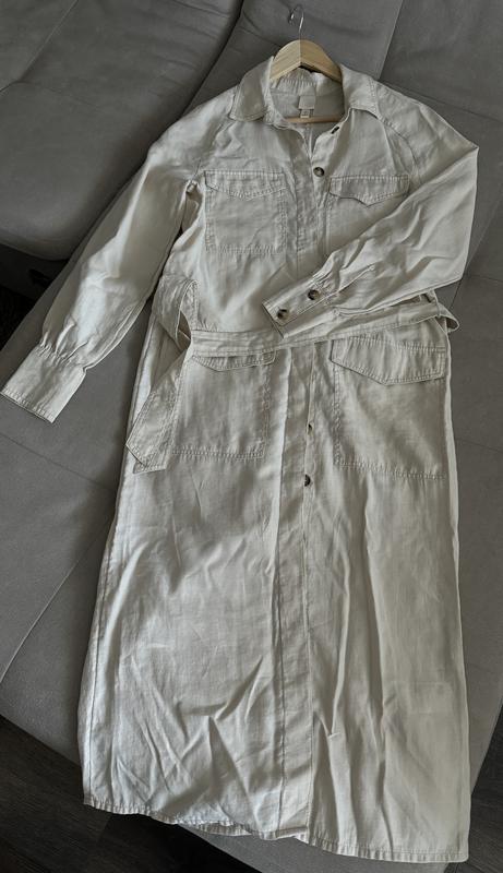 Сукня у гарному стані, легка тканина, гарно сідає по фігурі. Спереді на прихованих ґудзиках Півобхват грудей - 49 см Півобхват талії - 49 см Півобхват стегон - 49,5 см Довжина рукава від комірця - 74 см Довжина сукні - 122 см