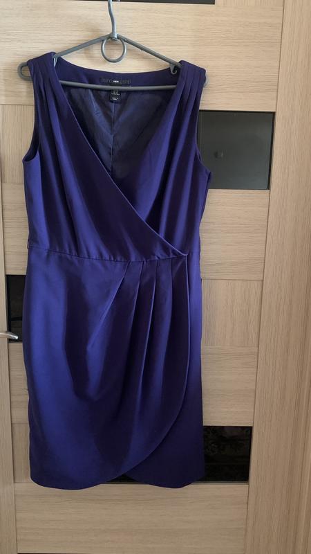Сукня міді, яскраво синього кольору , з декольте, що гарно підкреслює груди