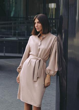 Материал - замш диагональ Цвет - бежевый Фурнитура - пуговицы Фасон - прямой, свободный Сезон - демисезон, весна, осень Декоративные элементы - Планка, низ рукава на резинке Конструктивные элементы планка-складка Комплектация - платье, пояс Уход за одеждой ручная стирка до 30° Длина изделия S-M = 106 см, L-XL = 108 см, XXL-3XL = 109 см. Длина рукава S-M = 53 см, L-XL = 53 см, XXL-3XL = 53 см