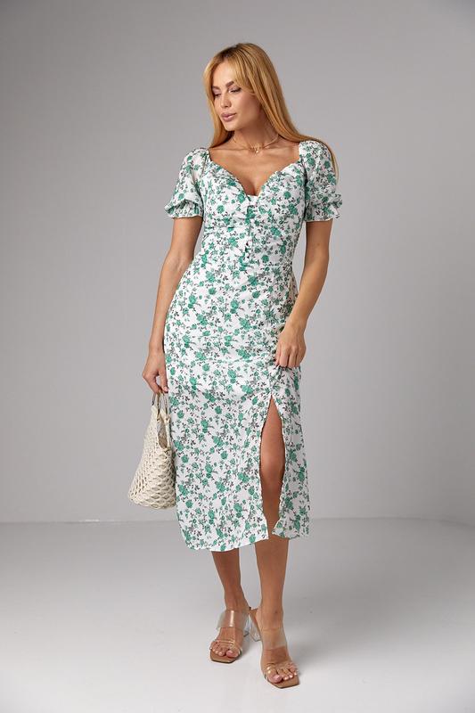 Літня сукня міді з коротким рукавом та відкритими плечима - зелений цвет, s (є розміри)