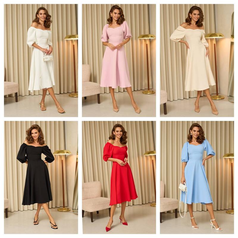 Жіноча сукня Розмірний ряд S,M,L,XL Тканина костюмна ( дуже якісна, приємна на дотик ) Кольори чорний, білий, беж, червоний, блакитний та пудра Сукня довжини міді, класичний та безпрограшний варіант на будь-який випадок Застібається на блискавку, рукава на гнучкій резинці, завдяки чому сукню легко регулювати Ціна 625 грн
