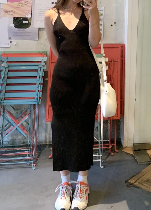 Платье миди, красиво подчеркивает фигуру и очень удобное. Сбоку на ноге есть разрез Мой рост 163 см При возникновении вопросов, пишите)