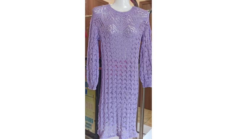 Жiноча в'чзана сукня з велюровоi пряжi, ручна робота, колiр лаванда, бузок . Пiд замовлення 60 днiв, колiр на вибiр.