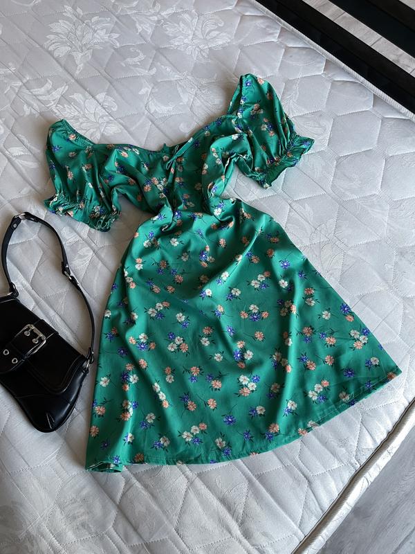 Очень красивое платье в цветочный принт 😍 Размер: Л -ХЛ смотрите замеры Сбоку застежка молния Плечи любые Грудь полухват: 52-54 см Под грудью по шву: 42-44 см Бедра: полухват 60 см (до 120 см ) Длина: 95 см Состояние: новой вещи 💚