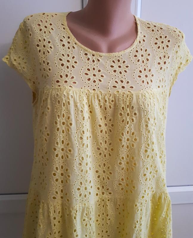Сукня міді, пошив оверсайз - трапеция з прошви.жевтий колір exclusive, на батістовій підкладці, розмір L, стандарт 46-48 стан ідеальний, вигуляна кілька разів Довжина від ворота 105, плечі 38, рукав 10, пог 52-56, пот овер по підкладці 55-62, пос по підкладці 60-,66