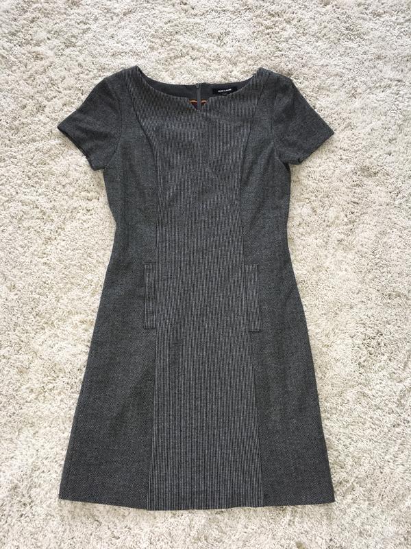 Класичне приталене, тепленьке плаття марки "More&More". Ззаду засувається на потаємний замочок, має тоненьку підкладку, кишені - імітація. Тканина тепла, мягенька. Розмір євр. - 38 {на фото вдягнено на 36}. Заміри: Плечі - 42 см Довжина рукава - 16 см Пог - 46-47 см Пот - 39-40 см Поб - 49 см Ширина по низу - 54 см Загальна довжина - 91 см Стан ідеальний, немає жодних недоліків.