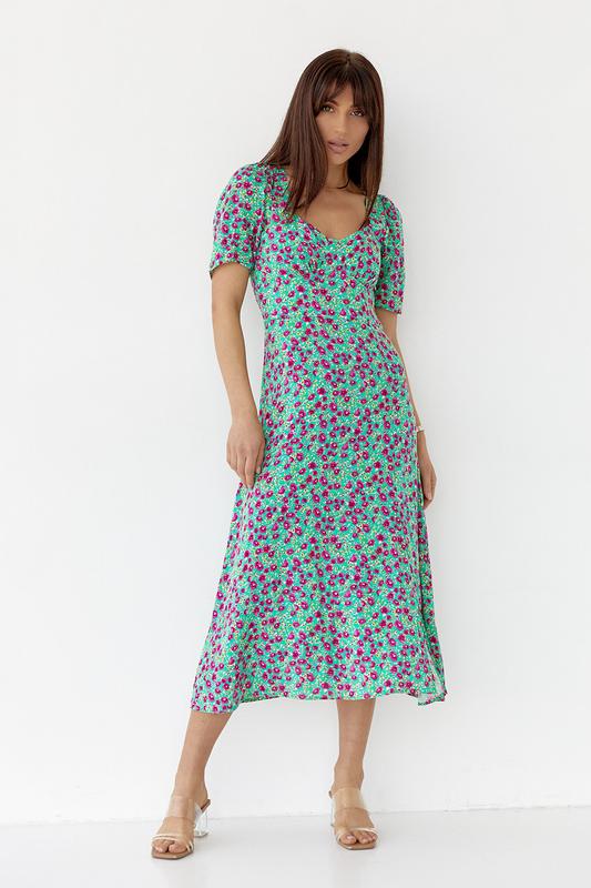 Сукня міді з розрізом у квітковий принт - зелений цвет, s (є розміри)