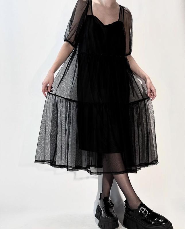 Платье макси с подкладкой и сеткой поверх нее h&m Очень мягкая сетка на ощупь, она ложится по фигуре, а не торчает Со сборками, идет словно ярусами Размер свободный, она довольно широкая, в стиле бейби ДОЛЛ Идет свободного кроя Длина сетки с рукавами 117 см, длина подкладки с рукавами 95 см Сверхянуто на рост 164 см
