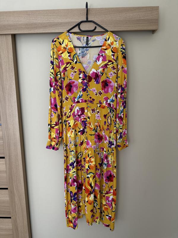 Тоненькое платье на пуговицах, длина рукава - 63см, общая длина платья - 124см, талия - 38см. Размер М