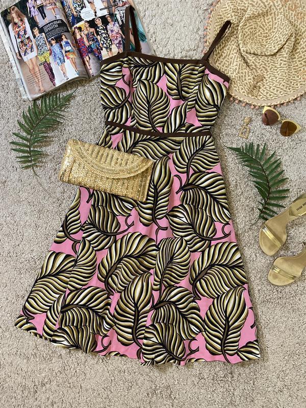 Для більш точного визначення, виміри, порівнюйте із вимірами подібної речі, а не зі своїми обсягами. Яскрава сукня міді в стилі ретро. Тканина щільна, тримає форму, тягнеться. Має підкладку. Крій ліф по фігурі. Талія відрізна. Спідниця кльош. Застібається позаду на блискавку. Юбка має розріз збоку на ґудзиках. Стан: ідеальний. Дефекти: немає. Розмір на бирці: 14 (Виміри виробу вимірюються у напівобхваті, а не від шва до шва!) Виміри виробу: Напівобхват грудей 51см., Напівобхват талія 42см., Напівобхват стегна 65см., Напівобхват низ 114см., довжина по спині 92см. довжина від плеча 113см., довжина від плеча до талії 41см. Склад тканини: 97% бавовна, 3% спандекс. Країна виробник: -. Бренд: In The wear. Оплата і доставка: Оплата на картку монобанк. Бронювання на оплату тільки 24г. При змінах наміру купувати обов'язково повідомляйте! Доставка: На час введення воєнного стану уточнюйте чи можлива доставка до Вашого пункту. Актуальні новини можна уточнити на сайті перевізника та за номером телефону контакт-центрів. Не забудьте ПІДПИСАТИСЯ щоб бути в курси всіх новинок та розпродажів!