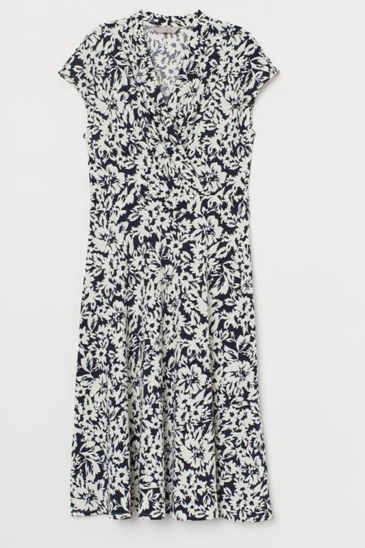 платье Н&М женское с V-образным вырезом из эластичного трикотажа с швом на талии и юбкой звон, без подкладки