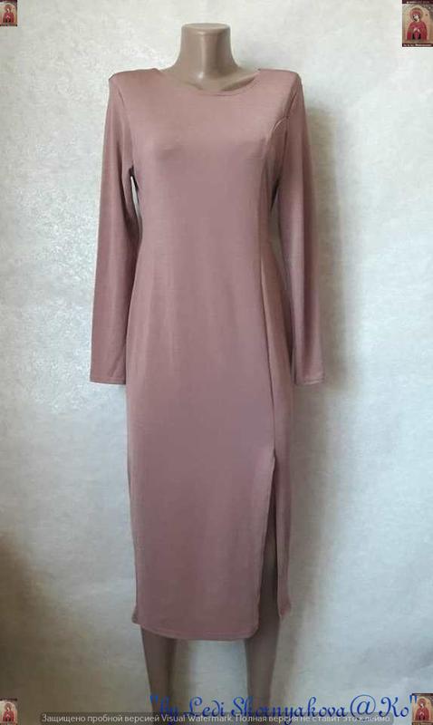 Фирменное prettylittlething платье-миди цвета "пудра" с мерцающей ткани, размер хл