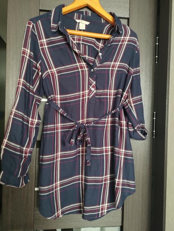 Темно синее короткое платье рубашка в клетку с длинными рукавами Длина - 78