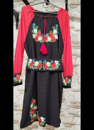 Вышитое платье с шифоновыми рукавами в комплекте имеет корсетик ( поясок) длина 100 ширина под рукавами 60 ширина в бедрах 62