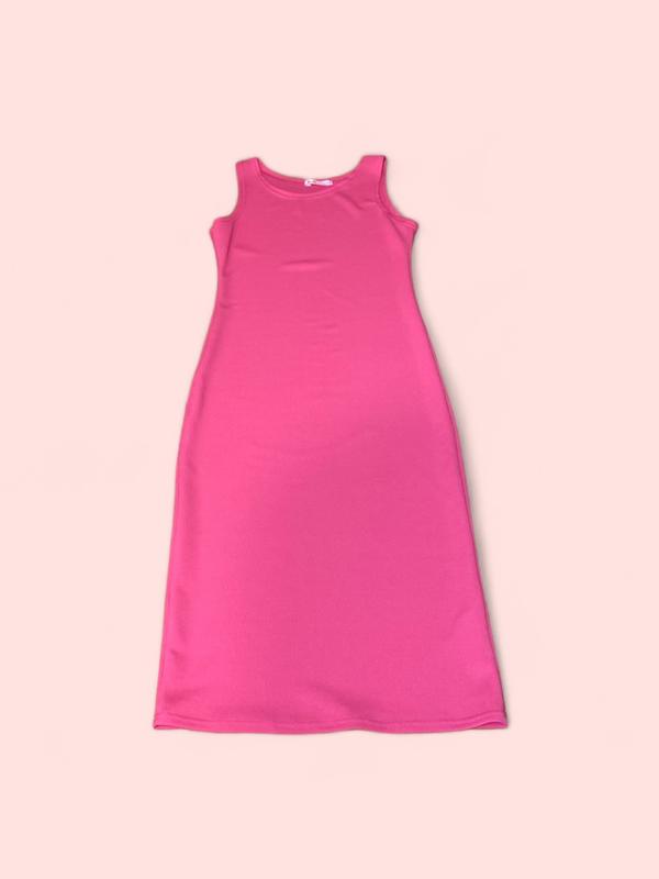 Сукня "Майка" Тканина: рубчик Туреччина Розмір М Колір: малиновий ПОГ: 37 см ПОТ: 35 см ПОС: 42 см Довжина: 110 см
