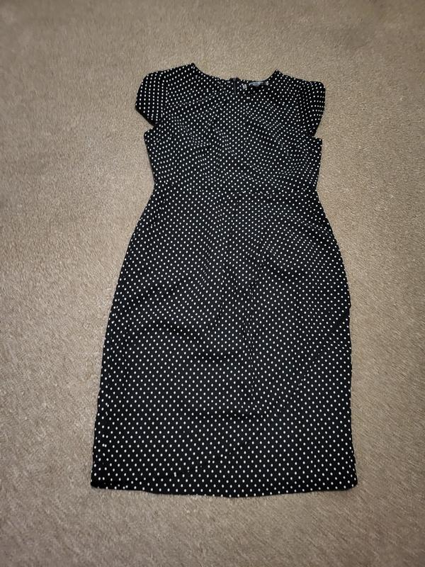 Красиве плаття в горох. якісне пошиття та матеріали. застібка змійка є кишені, взаді розріз, є підшивка.