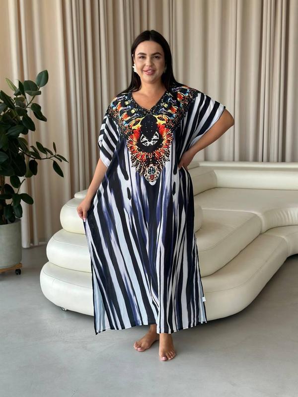 SW675 Розкішна новинка Ідеальна сукня-туніка для відпочинку Відмінна якість, легка та тоненька Розмір універсальний за рахунок крою, підходить на розміри L-6XL Замір: довжина 130 см; об'єм грудей 150 см Швидка доставка 1-2 дні