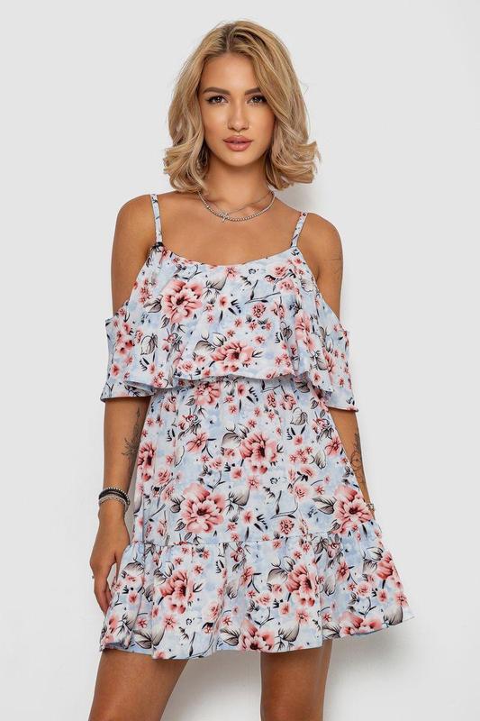 Платье с цветочным принтом, цвет голубой, 182r7188