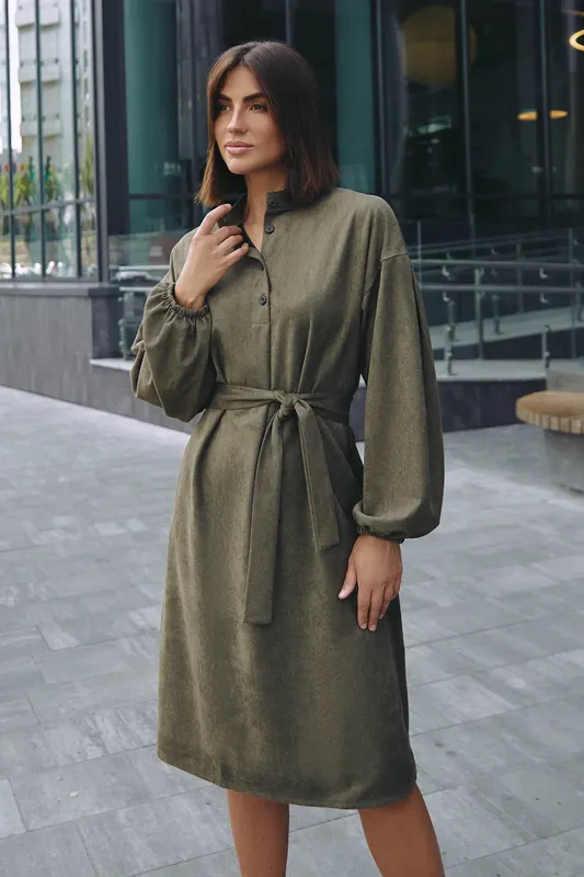 Медное платье замшевое теплое платье прямого кроя с поясом