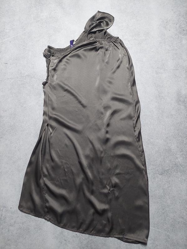 Дуже гарна сукня з натурального шовку, асиметрична, одне плече з шлярою. Довжина нижче колін. Виробник Італія. Темний беж.