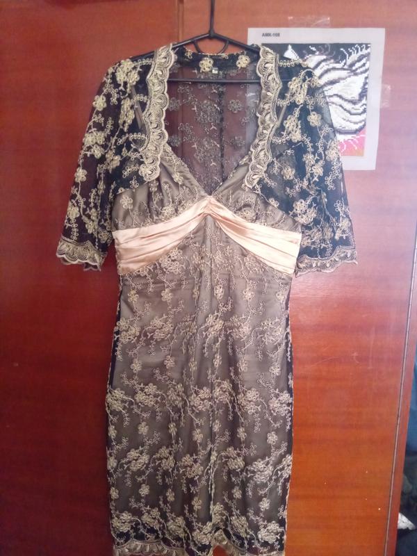Платье золотисто-черного цвета. На бретельках. В комплекті з болеро. Рукав болеро 3/4 Пог 46см пот 42 длина 100