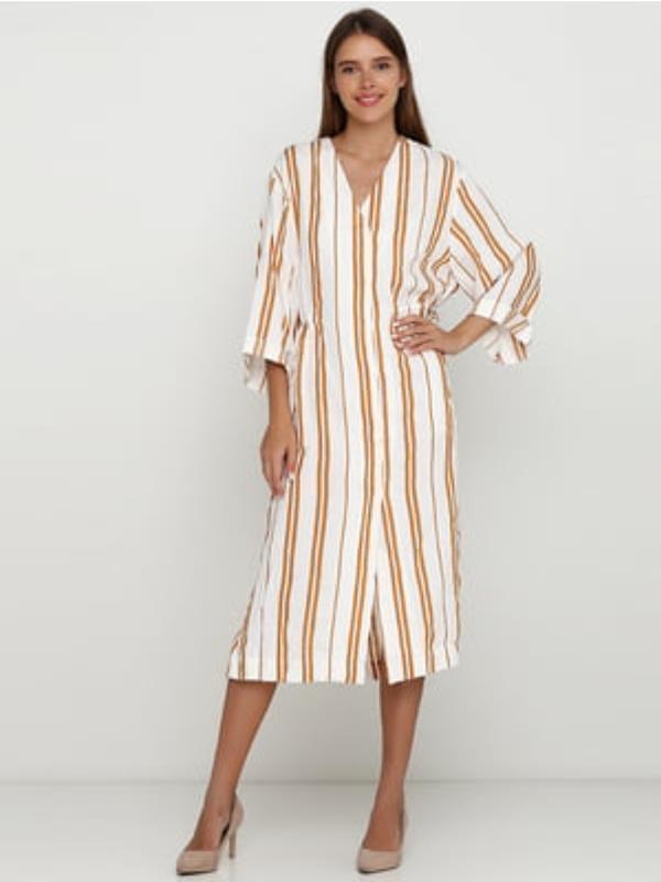 Качественное платье из льна, вискозы и лиоцелла. Трендовое платье рубашка H&M в полоску. Спереди застегивается на пуговицы, скрытые планкой. В поясе затягивается шнурками. По бокам карманы. Рукава подвернутые. Снизу по бокам разрезы по 39 см. Размер в наличии XS, отлично подойдет и на М. Смотрите замерами: XS: ПОГ 59 см, есть вытачки НОТ 58 см НОС 59 см Длина 119 см Плечевой шов 14,5 см Рукав 41 см Ширина в плечах 44 см В наличии большой выбор платьев H&M, Zara, Mango, ASOS — смотрите, пожалуйста, все свои объявления) Подписываться на мою страницу – частое пополнение ассортимента!) Состав: Лен 56%, вискоза 31%, лиоцелл 13%.