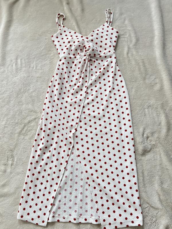 Платье миди, на спине завязывается на бант. Бретели регулируются. Можна носити без бюстгальтера. Размер xs-s. ОГ-84-86,ОТ до 70 см, ОБ до 95 см. Длина с бретелями от 110 см.
