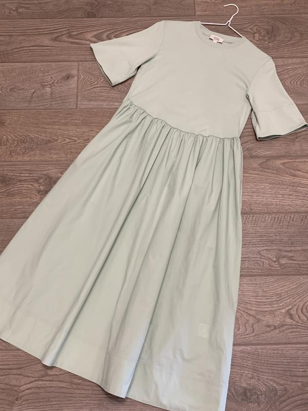 Платье коттоновое Cos р. S/36/8 - подойдет также на р. М/38/10. Красивый мятный цвет. По бокам карманы. Верх (топ) - коттон/плотной трикотаж, юбка - коттон. ПОГ 45 см + тянется ПОТ 46 см (свободная модель) Плечи 40,5 см Рукав 29 см Длина по спинке 125 см К-29