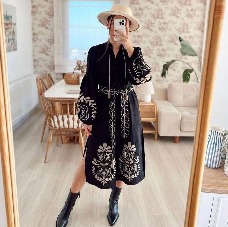 Женское платье с вышивкой под пояс Модель 5300 Материал: 100% хлопок Размеры: S M L Производитель: Турция Длина переда изделия S – 115см; M – 115см; L - 116см Ширина под проймами рукавов (над грудью) S – 50см; M – 51см; L - 52см Длина рукава от горловины S – 74см; M – 74см; L - 75см Длина рукава (внутреннего шва) S - 48см; M – 48см; L - 47см