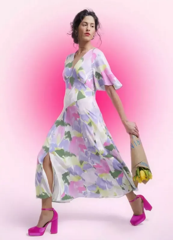 Новое!акварельное вискозное платье-миди с разрезом/платье-миди.батал