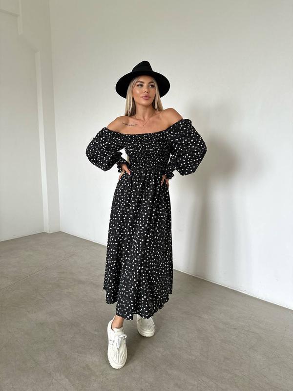 Женское платье (5382) ▫️Размерный ряд S,M,L,XL ▫️Ткань штапель, приятный на ощупь, очень качественный Цвет черный с мелким цветком Модель очень стильная, легкая, идеально подойдет под различную обувь, со стильной в этом году настрочной резинкой по груди ▫️Цена 825 грн