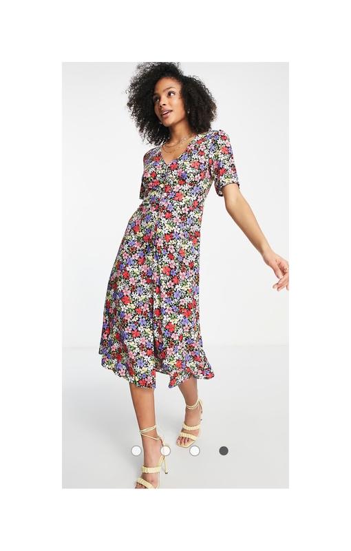 Актуальное платье миди, платье в цветочный принт, стильное, яркое, модное, трендовое