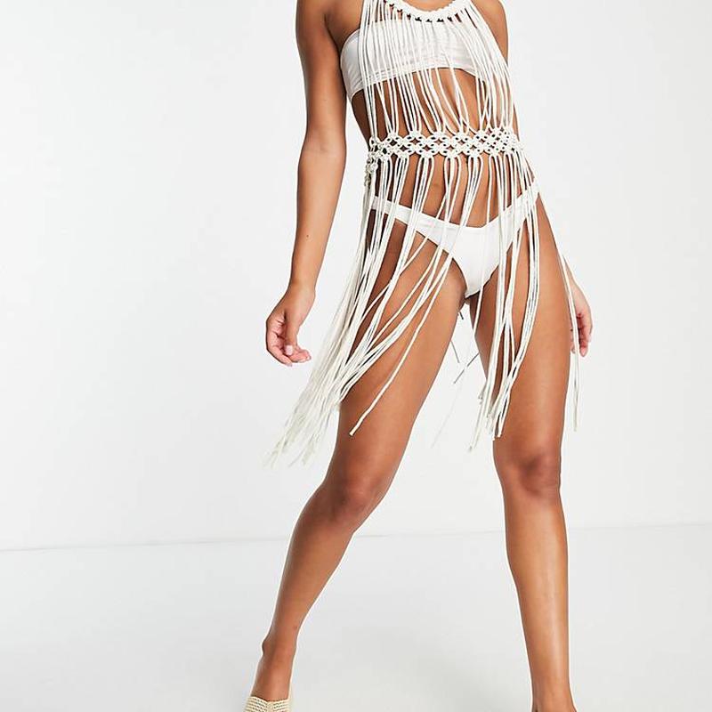 Пляжная туника мукня сетка макраме вязаное платье сарафан батал парео