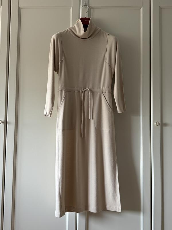 Antonelli , новое платье Цвет легкий беж Размер 42 ит - Рукав -реглан 64 Пог 46 ( потянется на 8-10 см ) Пот 39 ( можно регулировать завязками ) Поб 47 ( потянется на 8-10 см ) Воротник 12 см , можно сложить вдвое Длина 117 см Слева внизу разрез для удобства , 35 см Ткань мягкая , хорошо тянется Состав 53 % шерсть , 45 % вискоза , 2 % полиамид Цена бутика 790 евро , продаю за 200 евро по курсу на день оплаты